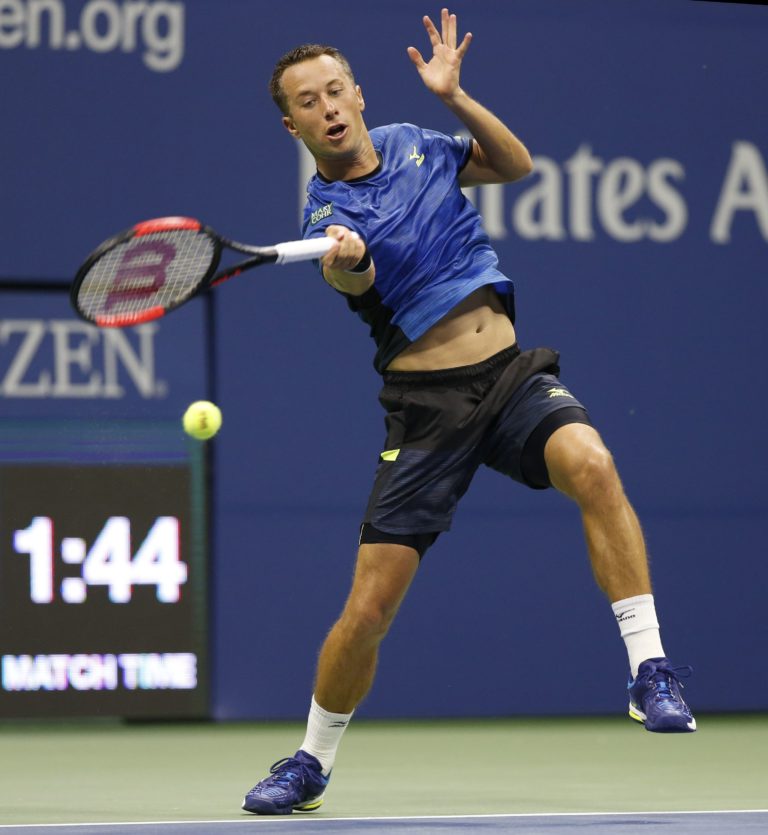 Nemecký tenista Philipp Kohlschreiber počas osemfinálového zápasu US Open, v ktorom podľahol Švajčiarovi Rogerovi Federerovi 4:6, 2:6, 5:7. New York, 4. september 2017. Foto: SITA/AP.