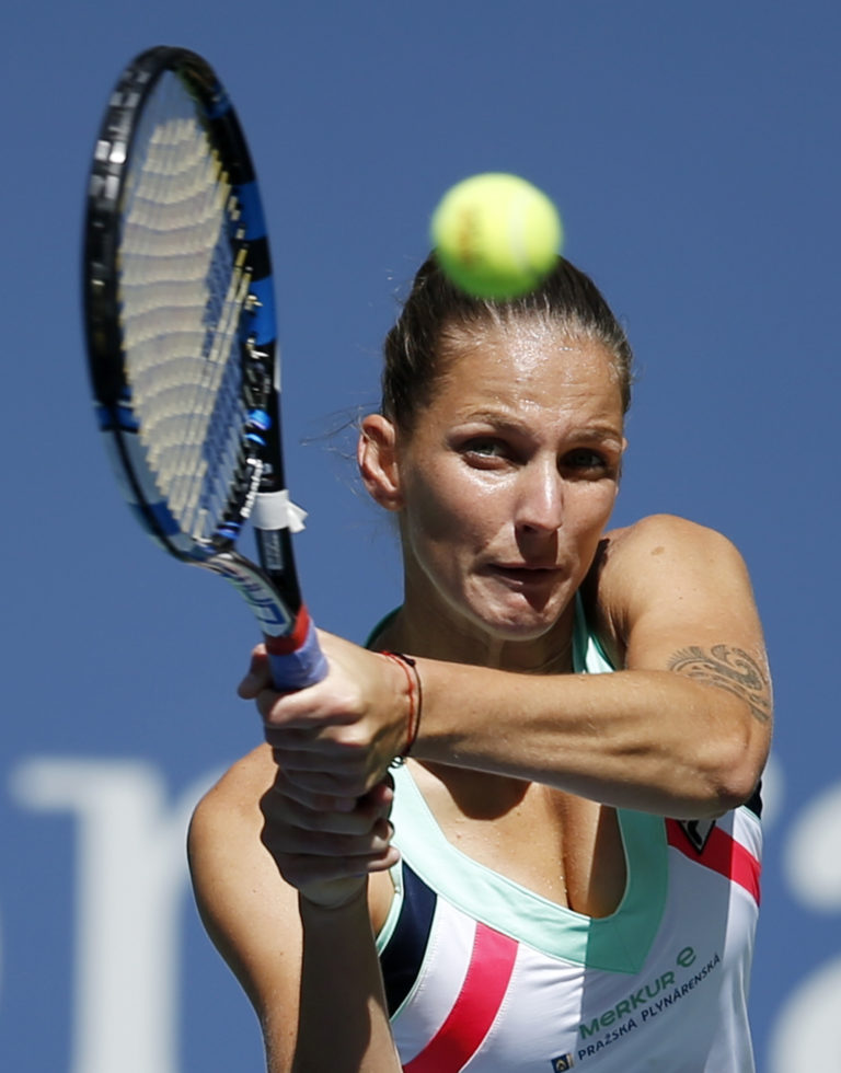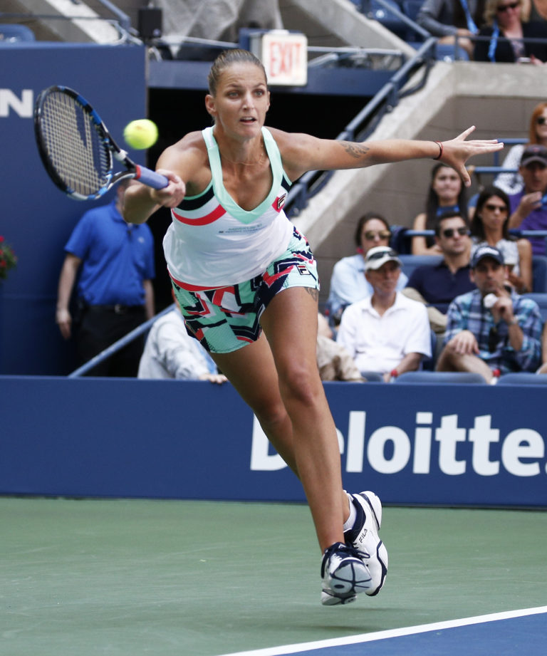 Česká tenistka Karolína Plíšková počas osemfinálového zápasu US Open, v ktorom za 45 minút deklasovala Američanku Jennifer Bradyovú 6:1, 6:0. New York, 4. september 2017. Foto: SITA/AP.