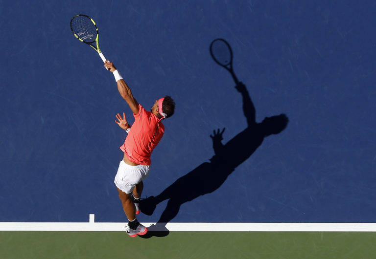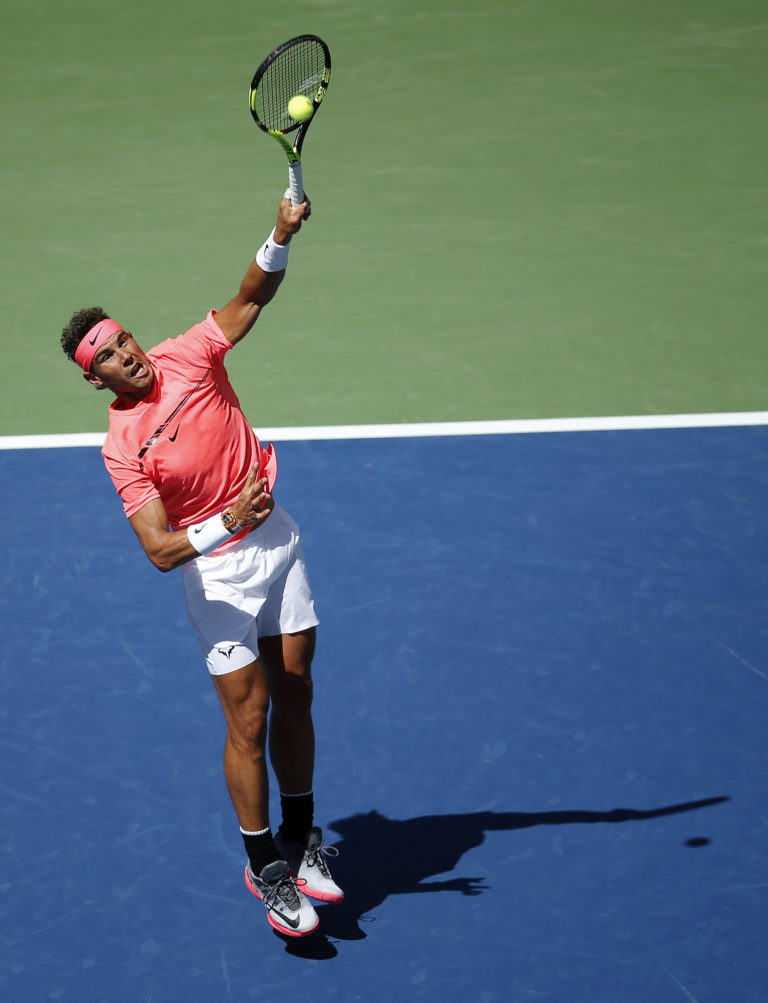 Španielsky tenista Rafael Nadal počas osemfinálového zápasu US Open, v ktorom zdolal Ukrajinca Alexandra Dolgopolova 6:2, 6:4, 6:1. New York, 4. september 2017. Foto: SITA/AP.