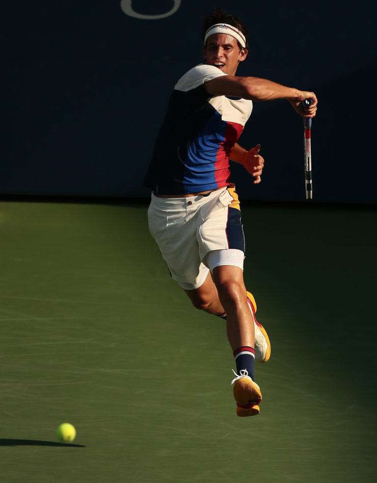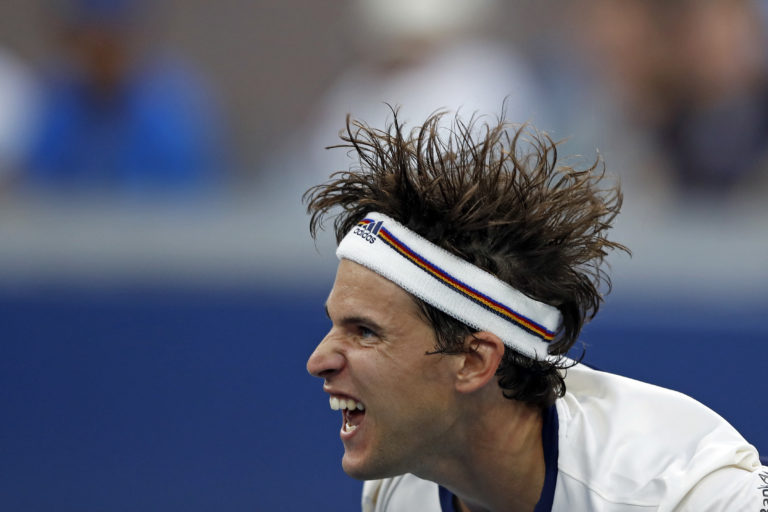 Rakúsky tenista Dominic Thiem počas osemfinálového zápasu US Open, v ktorom podľahol Argentínčanovi Juanovi Martínovi Del Potrovi 6:1, 6:2, 1:6, 6:7 (1), 4:6. New York, 4. september 2017. Foto: SITA/AP.