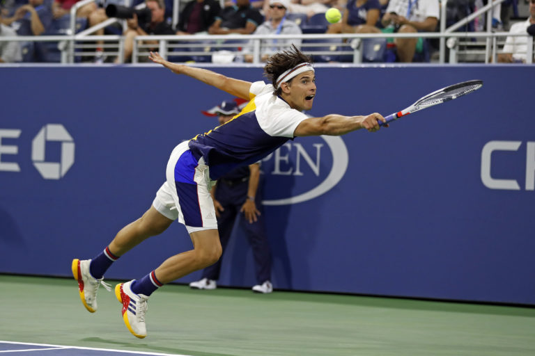 Ukrajinský tenista Alexandr Dolgopolov počas osemfinálového zápasu US Open, v ktorom podľahol Španielovi Rafaelovi Nadalovi 2:6, 4:6, 1:6. New York, 4. september 2017. Foto: SITA/AP.