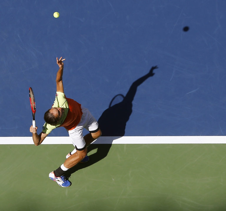 Švajčiarsky tenista Roger Federer počas osemfinálového zápasu US Open, v ktorom zdolala Nemca Philippa Kohlschreibera 6:4, 6:2, 7:5. New York, 4. september 2017. Foto: SITA/AP.