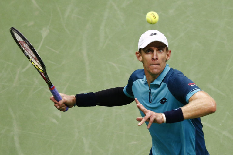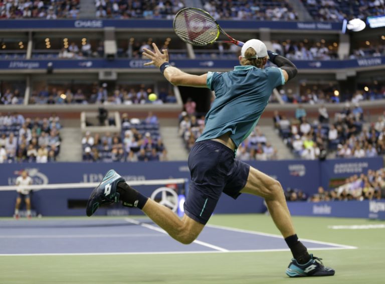 Juhoafričan Kevin Anderson počas zápasu semifinále US Open proti Španielovi Pablovi Carrenovi Bustovi, ktorého zdolal 4:6, 7:5, 6:3, 6:4. New York, 9. september, 2017. Foto: SITA/AP