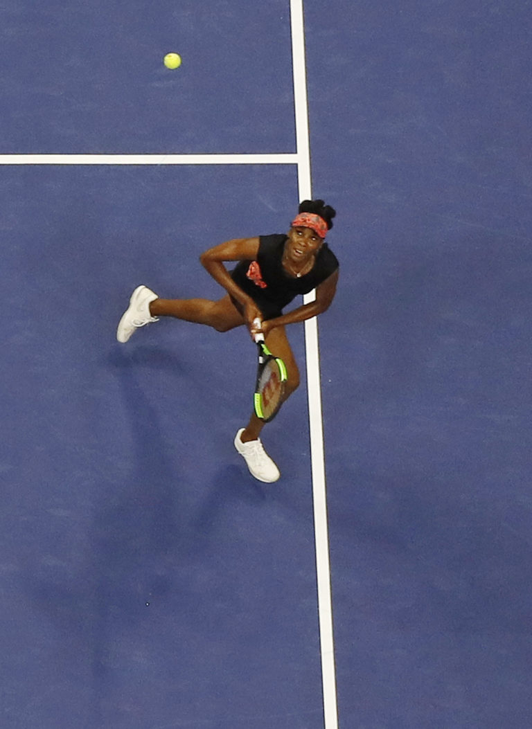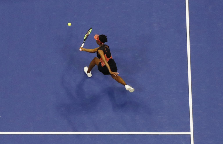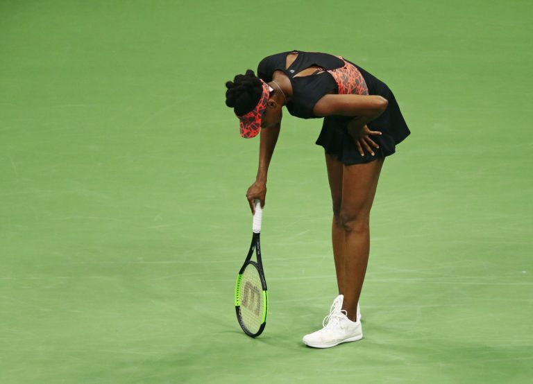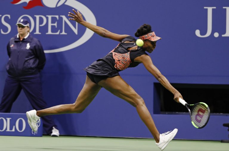 Americká tenistka Venus Williamsová počas semifinálového zápasu US Open, v ktorom podľahla krajanke Sloane Stephensovej 1:6, 6:0, 5:7. New York, 7. september 2017. Foto: SITA/AP.