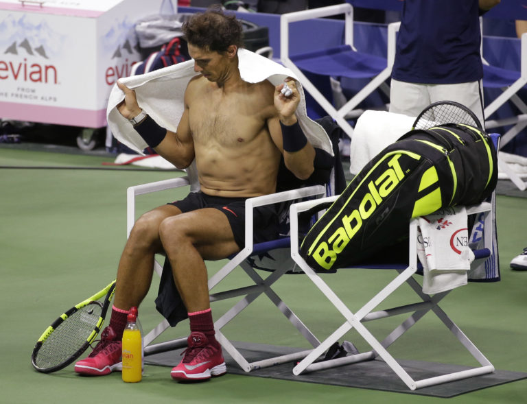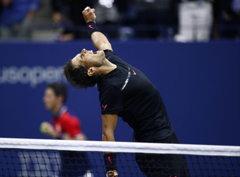 Španiel Rafael Nadal v zápase semifinále US open proti Argentínčanovi Juanovi Martinovi del Potrovi, ktorého zdolal 4:6, 6:0, 6:3, 6:2. New York, 9. september 2017. Foto: SITA/AP