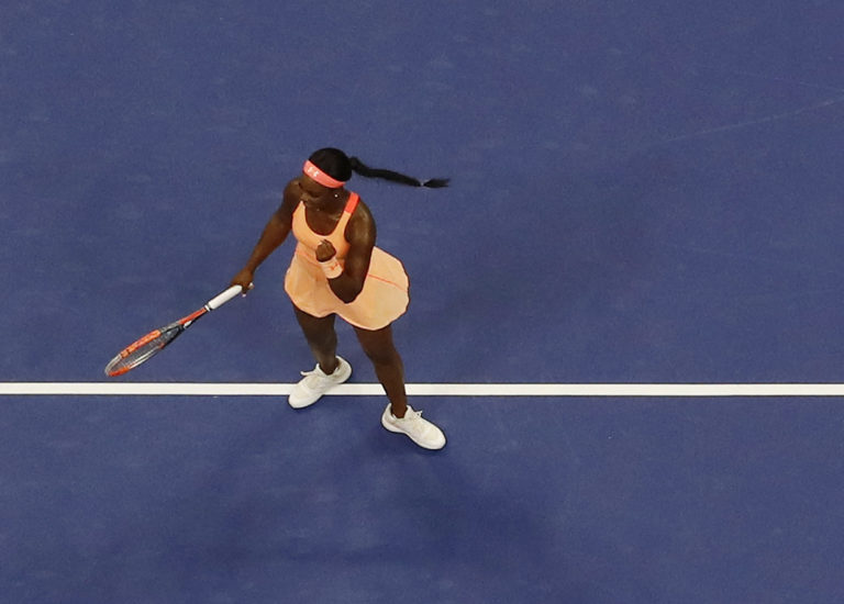 Americká tenistka Sloane Stephensová počas semifinálového zápasu US Open, v ktorom zdolala krajanku Venus Williamsovú 6:1, 0:6, 7:5. New York, 7. september 2017. Foto: SITA/AP.