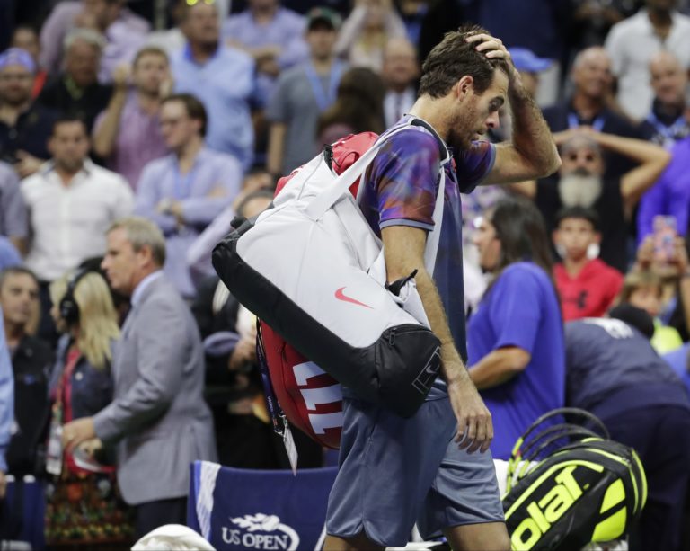 Argentínčan Juan Martin del Potro po zápase semifinále US Open, v ktorom podľahol Španielovi Rafaelovi Nadalovi 6:4, 0:6, 3:6, 2:6. New York, 9. september 2017. Foto: SITA/AP