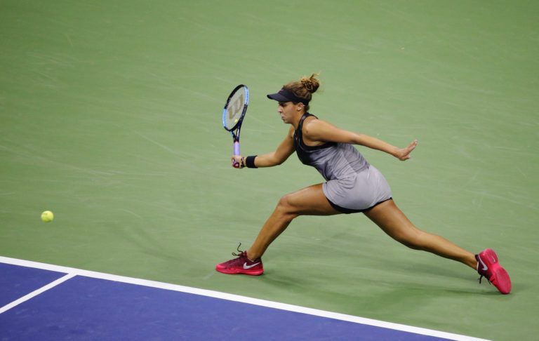 Americká tenistka Madison Keysová počas semifinálového zápasu na US Open, v ktorom zdolala krajanku CoCo Vandeweghovú 6:1, 6:2. New York, 7. september 2017. Foto: SITA/AP.
