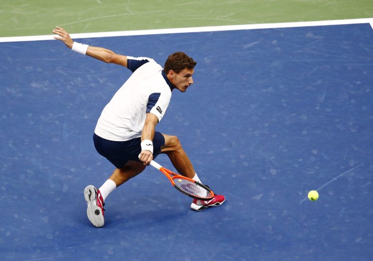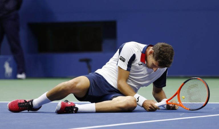 Španiel Pablo Carreno Busta, v zápase semifinále US Open proti Juhoafričanovi Kevinovi Andersonovi, ktorému podľahol 6:4, 5:7, 3:6, 4:6. New York, 9. september 2017. Foto: SITA/AP