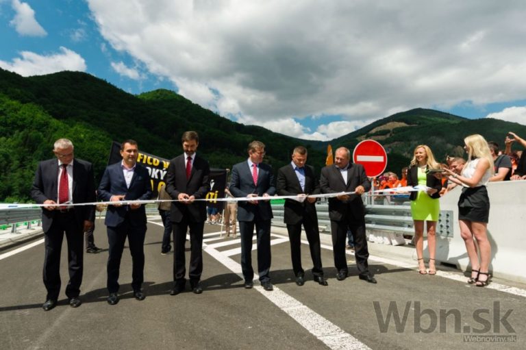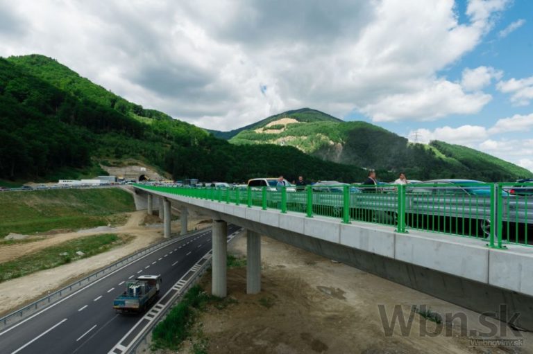 Začiatok úseku diaľnice D1 Dubná skala - Turany pri východnom portáli tunela Višňové - Dubná skala, premostenie cesty Vrútky - Žilina pri príležitosti slávnostného otvorenia úseku diaľnice. Vrútky, 10. júl 2015. Foto: SITA/Milo Fabian