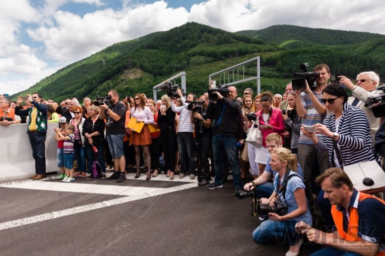 Zástupcovia médií a účastníci slávnostného otvorenia úseku diaľnice D1 Dubná skala - Turany. Vrútky, 10. júl 2015. Foto: SITA/Milo Fabian