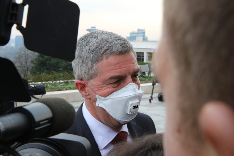 Poslanec za stranu Za ľudí Juraj Šeliga prichádza na ustanovujúcu schôdzu parlamentu. Bratislava, 20. marec 2020. Foto: SITA/Alexandra Čunderlíková.