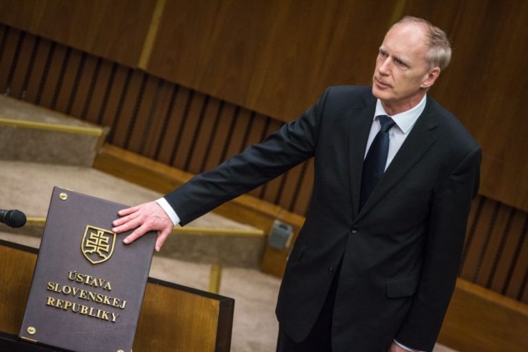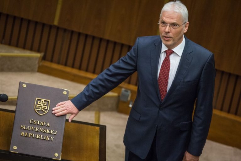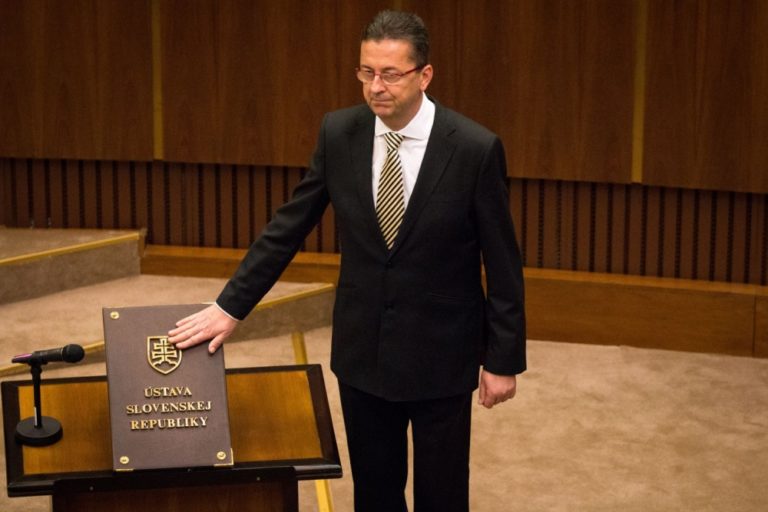 Poslanec NR SR Miroslav Lajčák za stranu Smer-SD skladá poslanecký sľub počas ustanovujúcej schôdze NR SR - VII. volebného obdobia. Bratislava, 23. marec 2016. Foto: SITA/Marek Mrviš