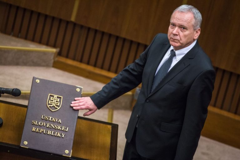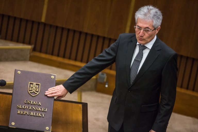 Poslanec NR SR Dušan Čaplovič za stranu Smer-SD skladá poslanecký sľub počas ustanovujúcej schôdze NR SR - VII. volebného obdobia. Bratislava, 23. marec 2016. Foto: SITA/Marek Mrviš