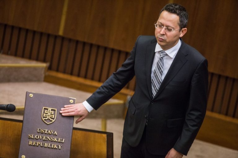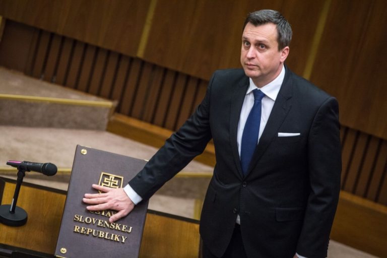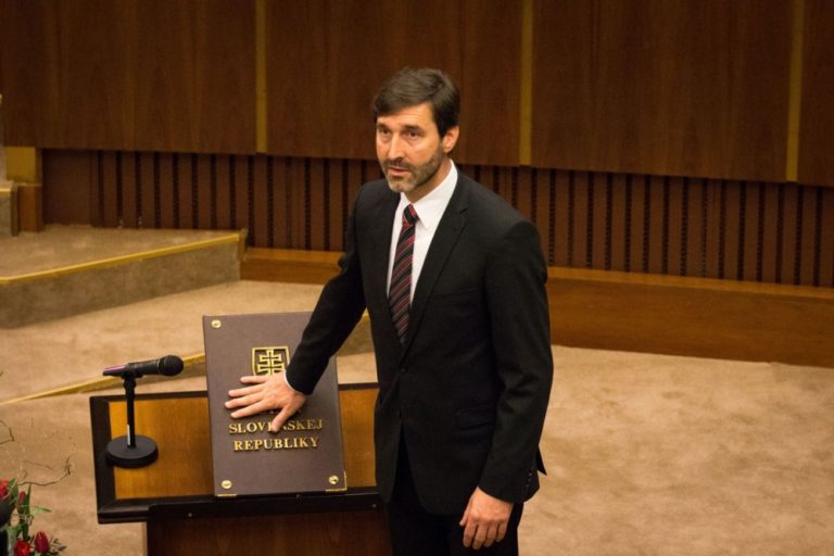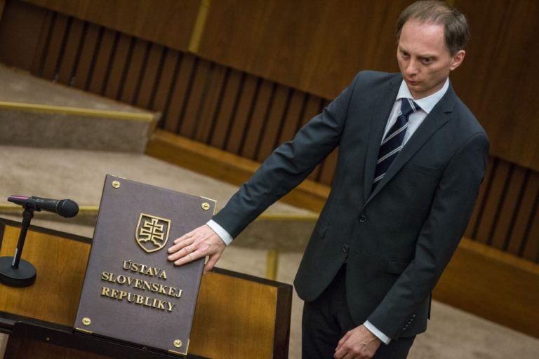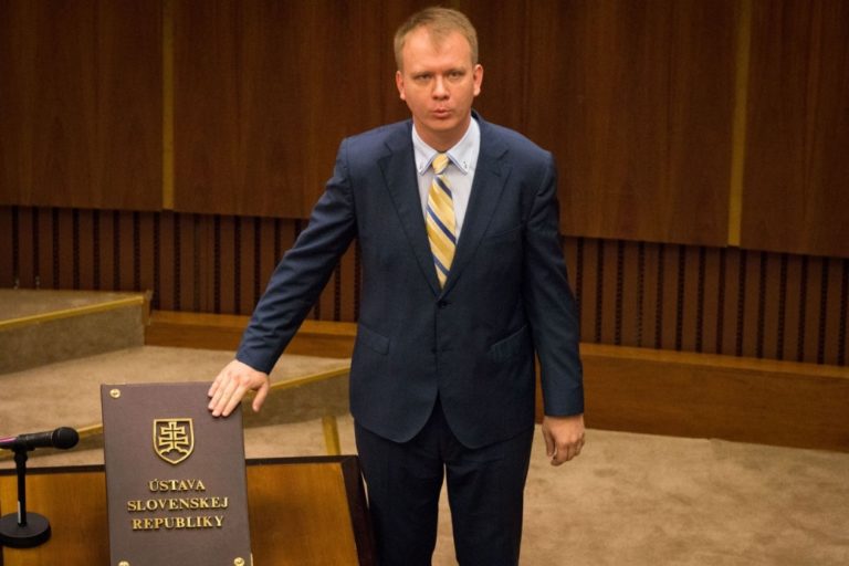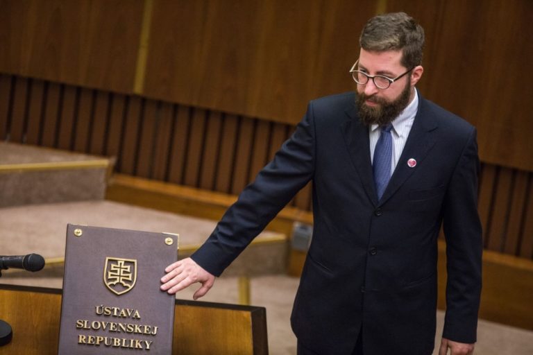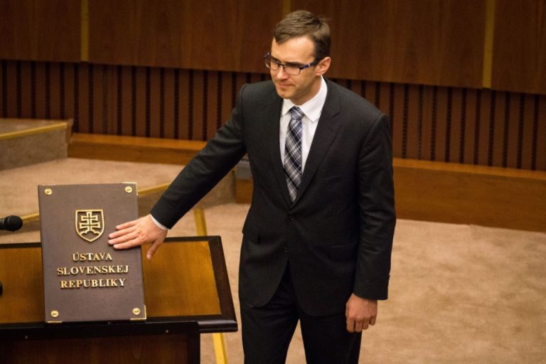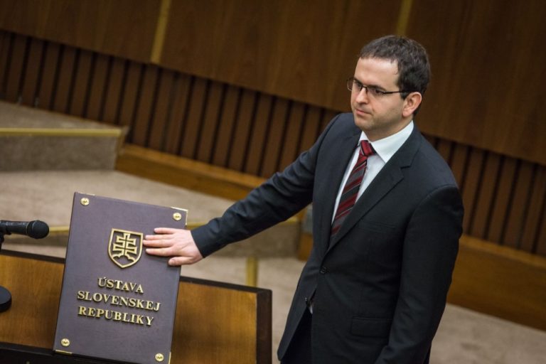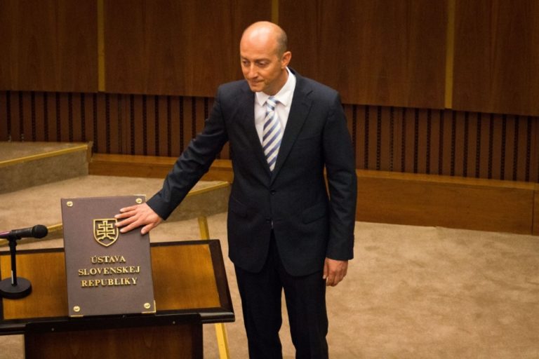 Daniel Lipšic za stranu OĽaNO-Nova skladá poslanecký sľub počas ustanovujúcej schôdze NR SR. 23. marec 2016. Foto: SITA/Marko Erd