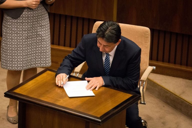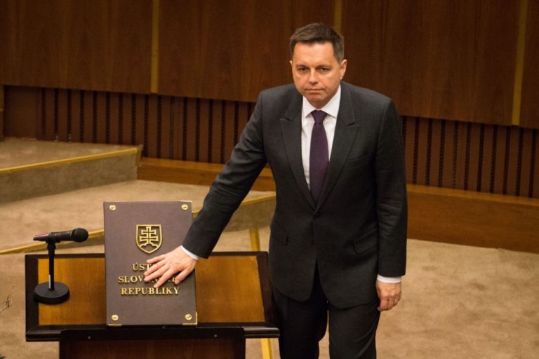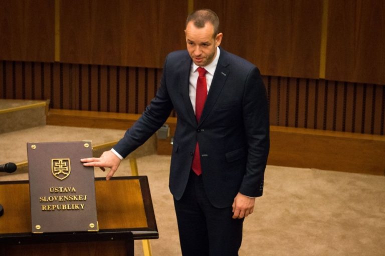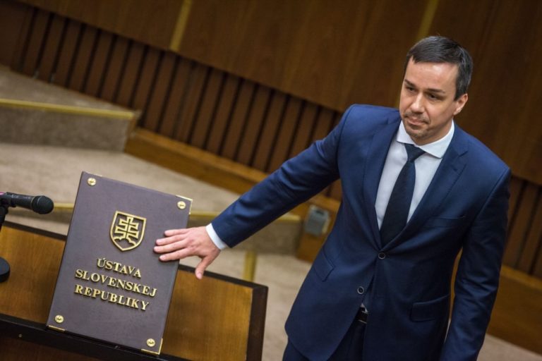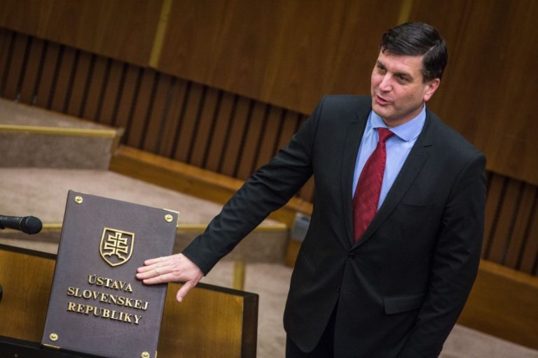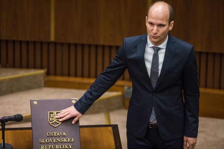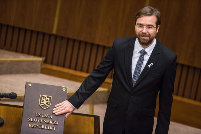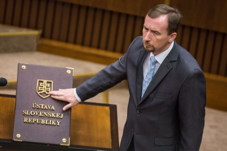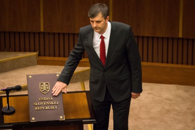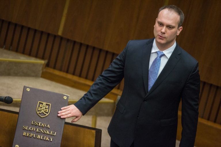 Daniel Lipšic za stranu OĽaNO-Nova skladá poslanecký sľub počas ustanovujúcej schôdze NR SR. 23. marec 2016. Foto: SITA/Marko Erd