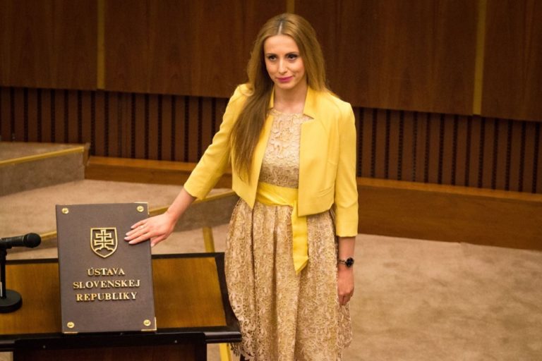 Poslankyňa NR SR Petra Krištúfková za stranu Sme rodina skladá poslanecký sľub počas ustanovujúcej schôdze NR SR - VII. volebného obdobia. Bratislava, 23. marec 2016. Foto: SITA/Marek Mrviš