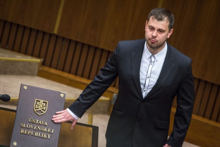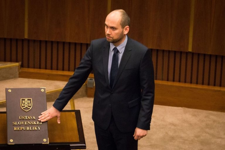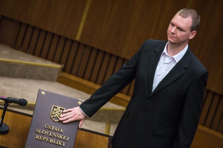 Poslanec NR SR Martin Fedor za stranu Sieť skladá poslanecký sľub počas ustanovujúcej schôdze NR SR - VII. volebného obdobia. Bratislava, 23. marec 2016. Foto: SITA/Marek Mrviš