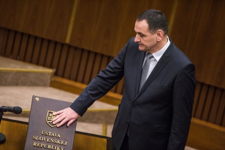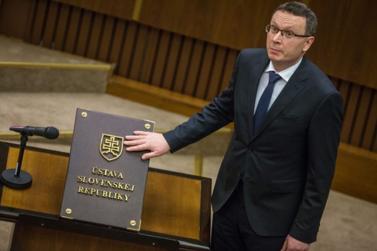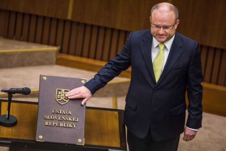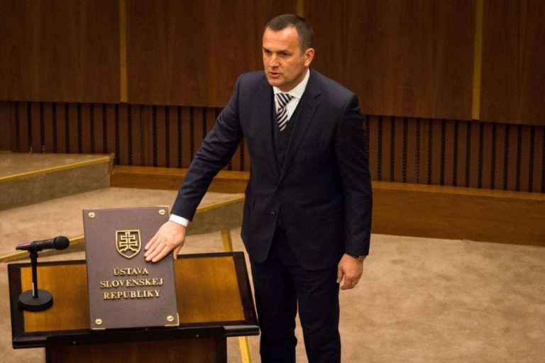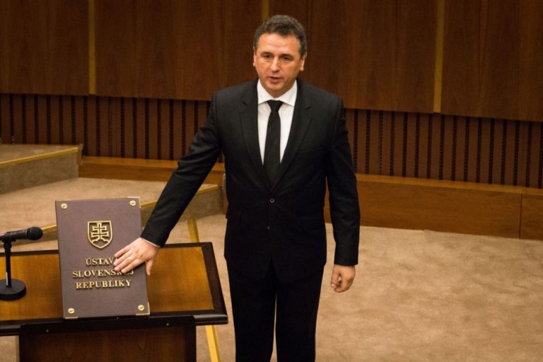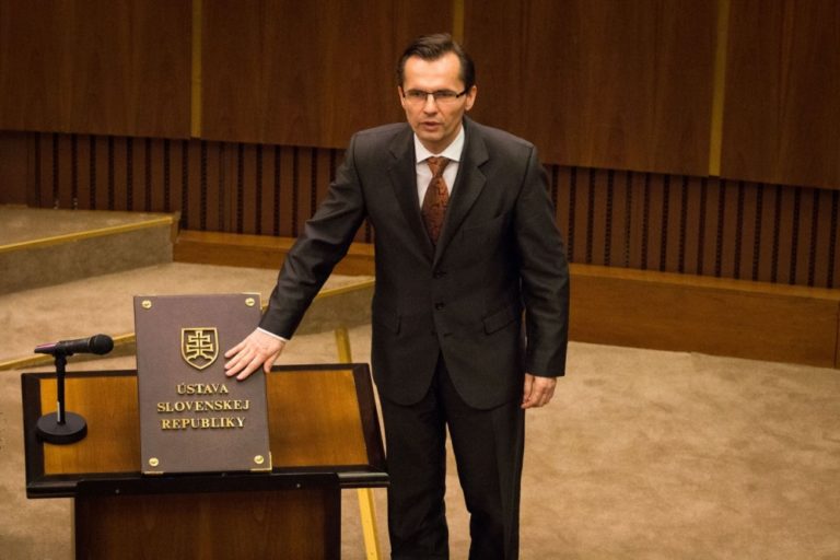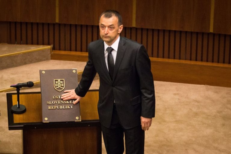 Poslanec NR SR Peter Kažimír za stranu Smer-SD skladá poslanecký sľub počas ustanovujúcej schôdze NR SR - VII. volebného obdobia. Bratislava, 23. marec 2016. Foto: SITA/Marek Mrviš