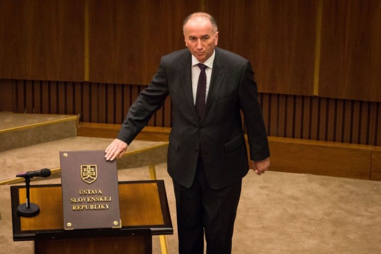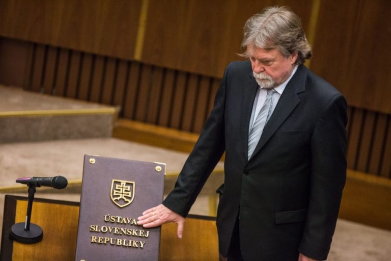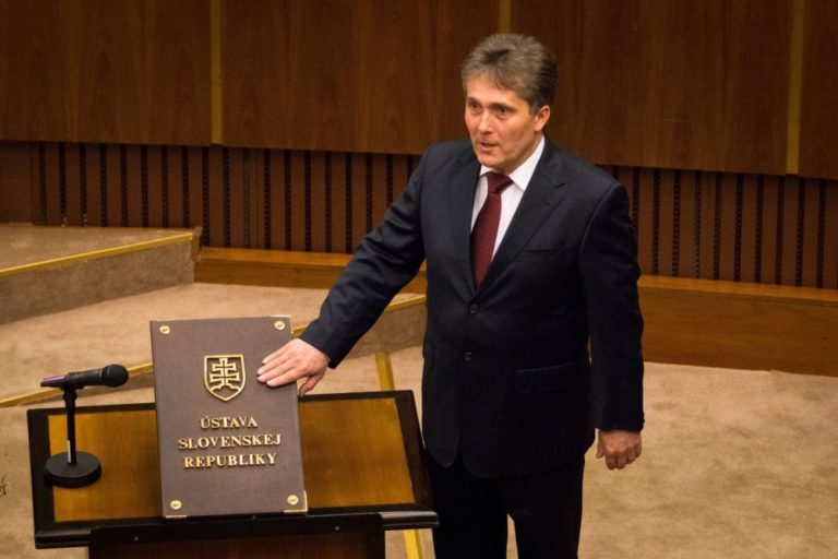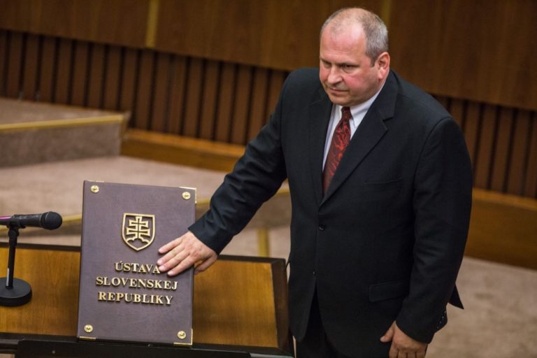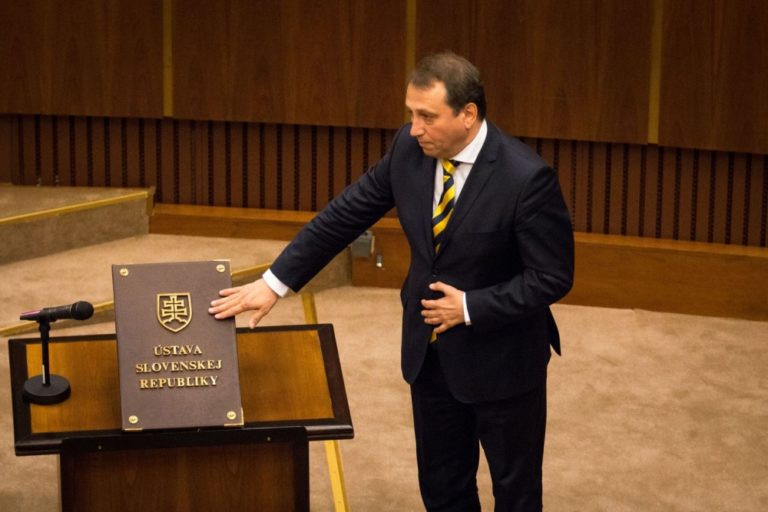 Poslanec NR SR František Šebej za stranu Most-Híd skladá poslanecký sľub počas ustanovujúcej schôdze NR SR - VII. volebného obdobia. Bratislava, 23. marec 2016. Foto: SITA/Marko Erd