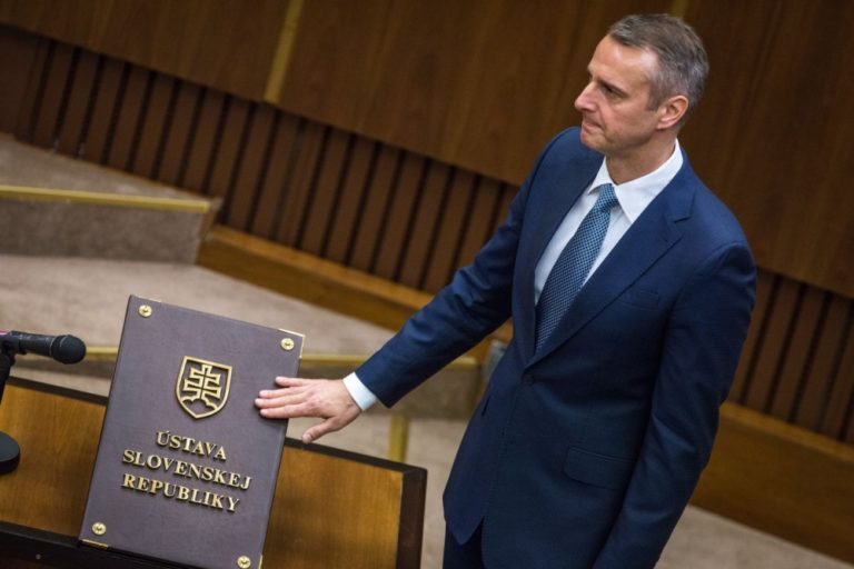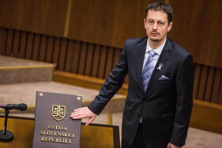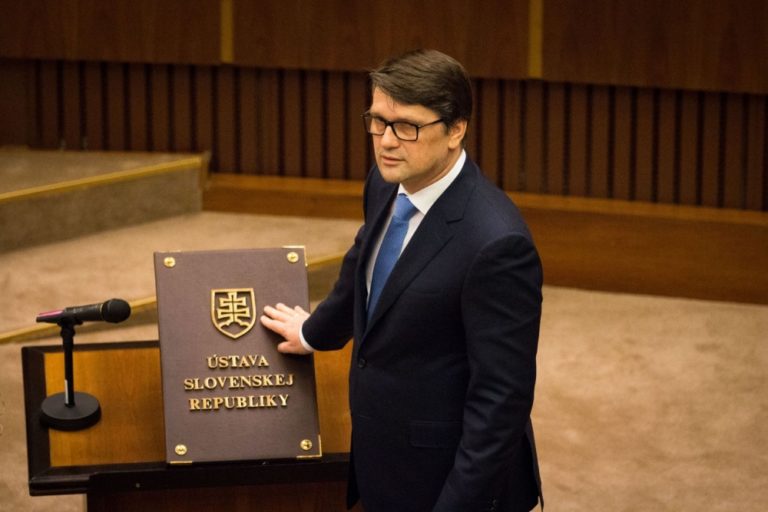 Poslanec NR SR Eduard Heger za stranu OĽaNO-Nova skladá poslanecký sľub počas ustanovujúcej schôdze NR SR - VII. volebného obdobia. Bratislava, 23. marec 2016. Foto: SITA/Marko Erd