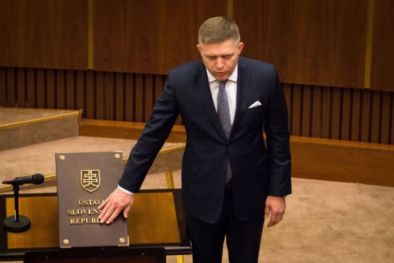 Poslanec NR SR Robert Fico za stranu Smer-SD skladá poslanecký sľub počas ustanovujúcej schôdze NR SR - VII. volebného obdobia. Bratislava, 23. marec 2016. Foto: SITA/Marek Mrviš
