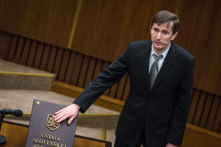 Poslanec NR SR Radoslav Procházka za stranu Sieť skladá poslanecký sľub počas ustanovujúcej schôdze NR SR - VII. volebného obdobia. Bratislava, 23. marec 2016. Foto: SITA/Marek Mrviš