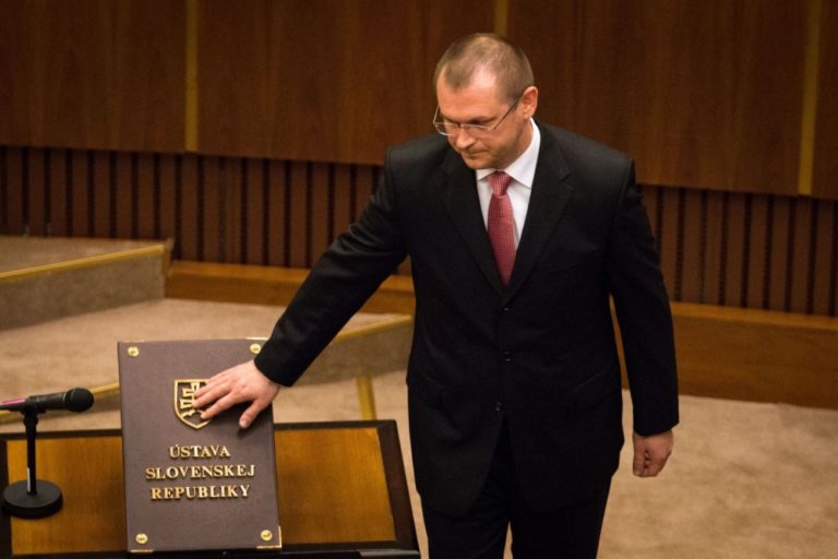 Poslanec NR SR Andrej Danko za stranu SNS skladá poslanecký sľub počas ustanovujúcej schôdze NR SR - VII. volebného obdobia. Bratislava, 23. marec 2016. Foto: SITA/Marko Erd