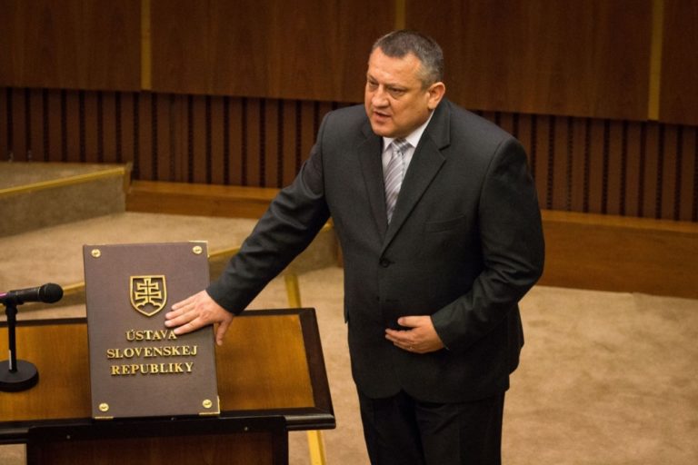 Poslanec NR SR Branislav Ondruš za stranu Smer-SD skladá poslanecký sľub počas ustanovujúcej schôdze NR SR - VII. volebného obdobia. Bratislava, 23. marec 2016. Foto: SITA/Marko Erd