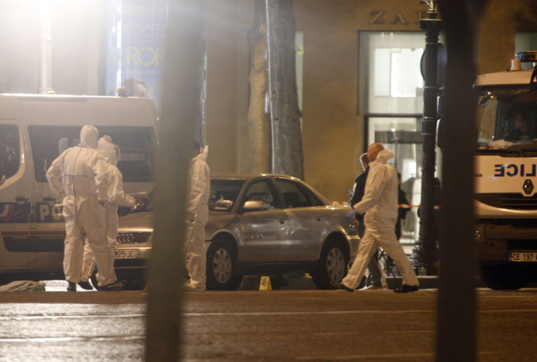 Na Champs-Élysées spustil útočník paľbu na policajtov strážiacich okolie vchodu do stanice metra. Paríž, 20. apríla 2017. Foto: SITA/AP