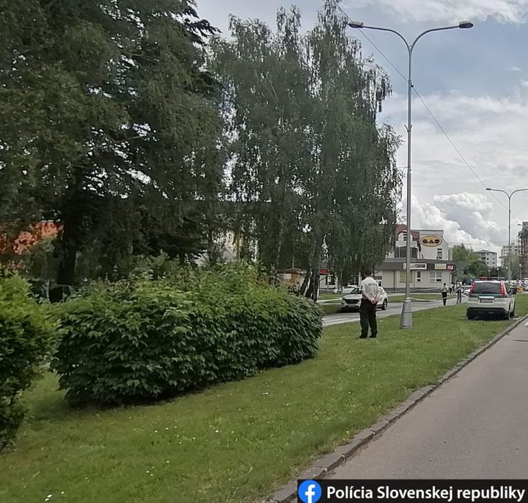 Ležiaci útočník (vľavo) na ulici Zelená v mestskej časti Martin - Priekopa, kde bol dostihnutý, po útoku na žiakov a pracovníkov školy na Spojenej škole na Ulici M. R. Štefánika vo Vrútkach. Martin, 11. jún 2020. Foto: SITA/Milo Fabian