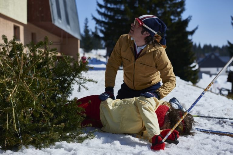 "Kto sa smeje naposledy, ten sa smeje najlepšie", láka Vojta Kotek na svoju filmovú komédiu Padesátka, ktorá sa odohráva na hrebeňoch, svahoch a v chatách zasnežených Krkonoší. Foto: Bontonfilm