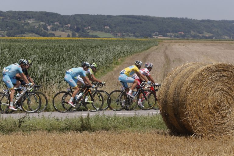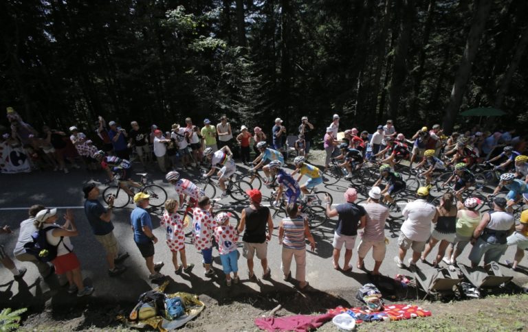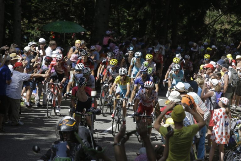 Vincenzo Nibali (v žltom) počas 13. etapy Tour de France, ktorá viedla zo Saint Étienne do Chamrousse a merala 197,5 kilometrov. Foto: SITA/AP