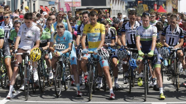 Cyklisti pred štartom 13. etapy Tour de France, ktorá viedla zo Saint Étienne do Chamrousse a merala 197,5 kilometrov. Foto: SITA/AP