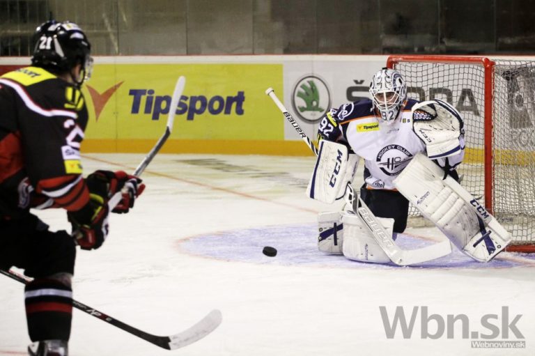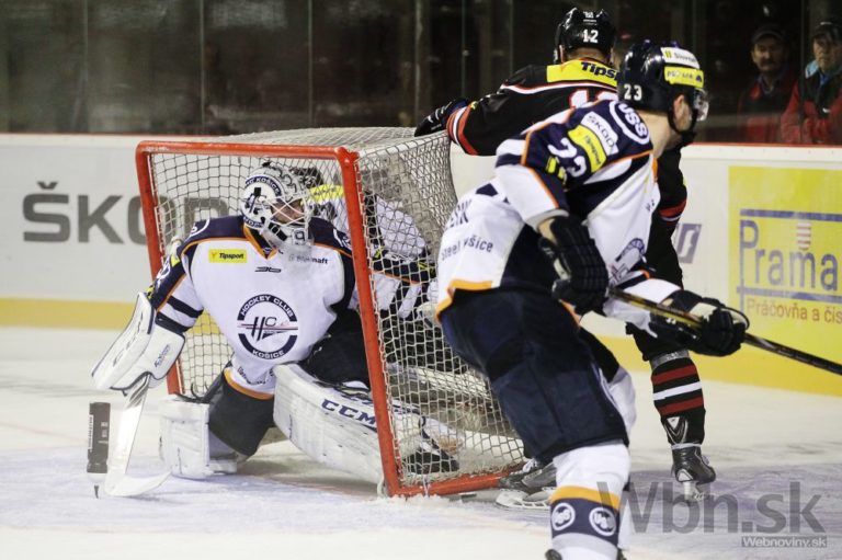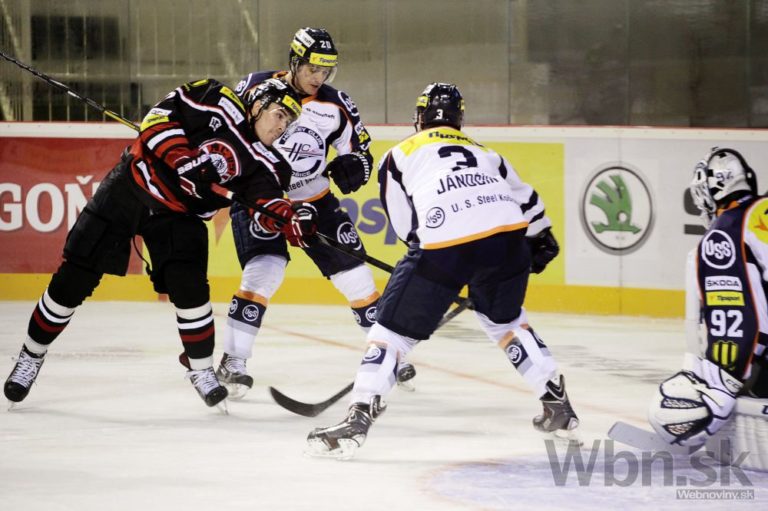Marcel Melicherčík (vľavo) z HC Košice počas 14. kola Tipsport extraligy medzi HC'05 Banská Bystrica - HC Košice. Banská Bystrica, 17. október 2014. Foto: SITA/Ján Viazanička
