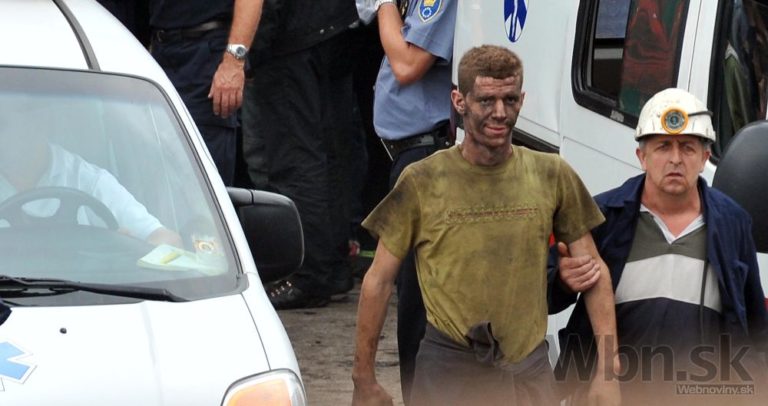 Zachránený baník, ktorého vyslobodili zo zavalenej bane. Štvrtkový výbuch plynu v bani v bosnianskom mestečku Zenica v dôsledku zemetrasenia neprežilo päť mužov. Sarajevo, Bosna, 5. septembra 2014. Foto: SITA/AP