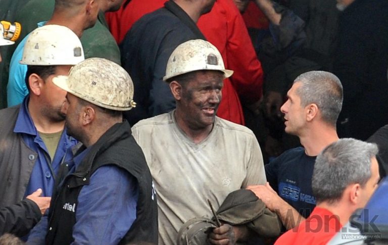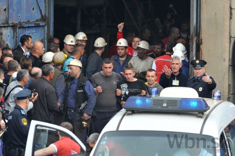 Baníci pomáhajúci kolegom pri vyslobodzovacích prácach pri zavalenej bani Raspotočje. Štvrtkový výbuch plynu v bani v bosnianskom mestečku Zenica v dôsledku zemetrasenia neprežilo päť mužov. Sarajevo, Bosna, 5. septembra 2014. Foto: SITA/AP