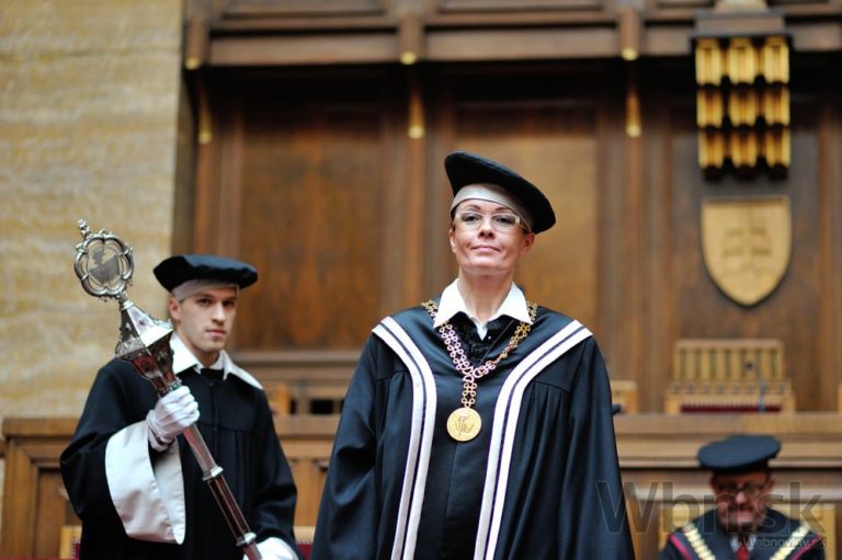 Dekanka Pedagogickej fakulty UK Alica Vančová počas slávnostnej inaugurácie desiatich dekanov fakúlt Univerzity Komenského v Bratislave. Foto: SITA/Robert Tappert