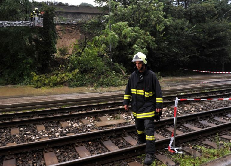 Pri bratislavskom PKO sa zosunul svah, na viacerých miestach hlavného mesta skolabovala doprava, cesty boli zaplavené a neprejazdné. Bratislava, 14. septembra 2014.
