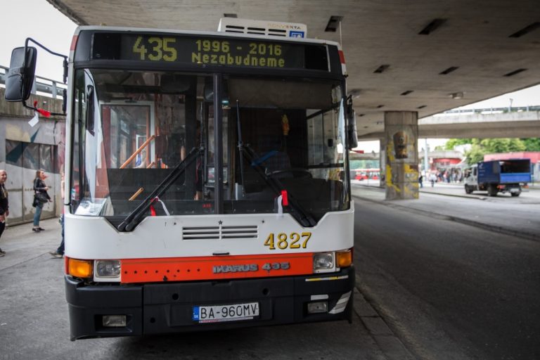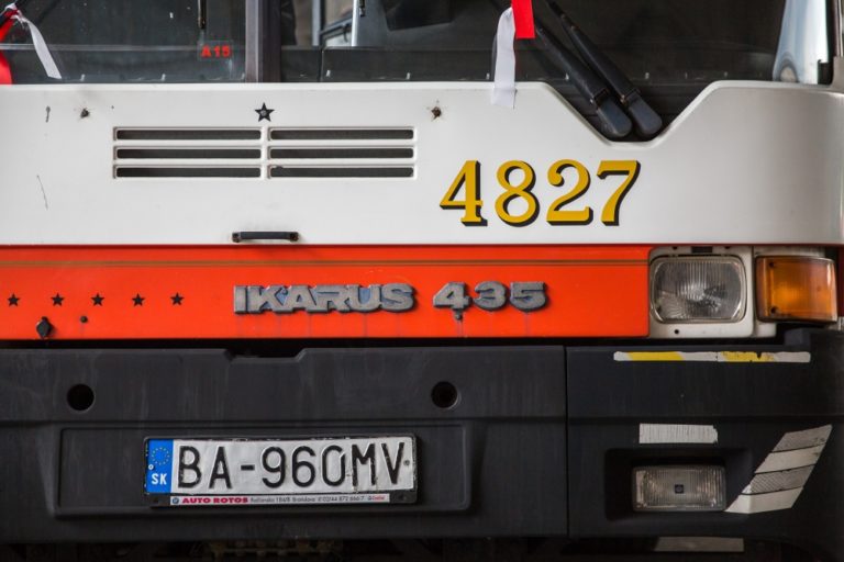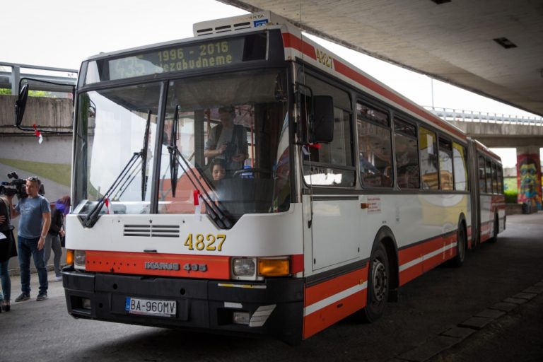 Pohľad na autobus Ikarus 435 počas rozlúčkovej jazdy. Bratislava, 20. máj 2016. Foto: SITA/Marko Erd