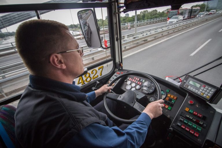 Vodič autobusu počas rozlúčkovej jazdy autobusom Ikarus 435. Bratislava, 20. máj 2016. Foto: SITA/Marko Erd