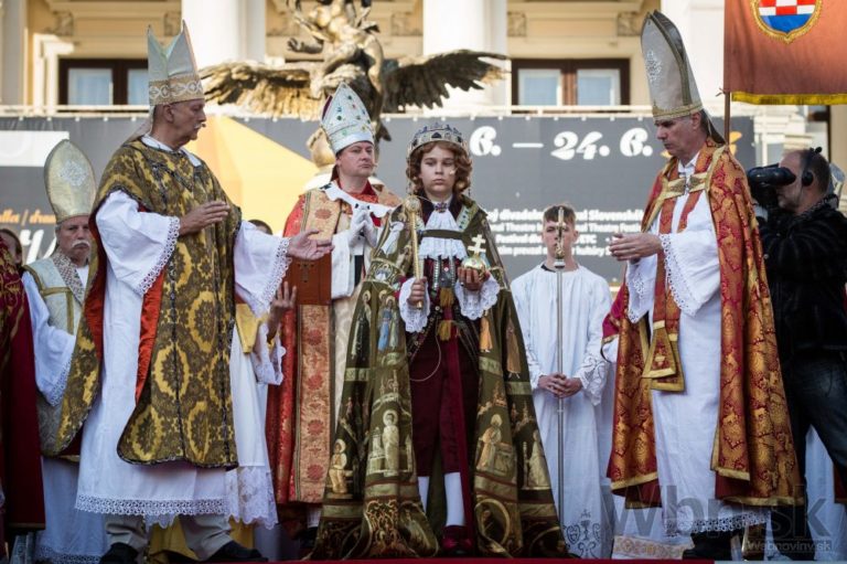 Historické centrum Bratislavy tento víkend patrí dvanástemu ročníku Korunovačných slávností. Tie sú tento rok venované Jozefovi I. Habsburskému, ktorý sa stal uhorským kráľom ako deväťročný. Vládol do roku 1711, keď ako 32-ročný zomrel na pravé kiahne. V inscenácií korunovačného obradu sa v úlohe Jozefa I. predstavil Daniel Vetrík, Jozefovho otca, cisára Leopolda I. stvárnil Vladimír Kobielsky, cisárovnú Eleonóru Magdalénu Kristína Turjanová a ostrihomského arcibiskupa zas František Kovár. V autentickom predstavení korunovácie vystúpilo približ Foto: SITA/Jozef Jakubčo