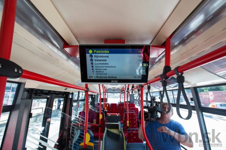 Informačný panel nového trolejbusu Škoda 30 Tr pri príležitosti novinárskej jazdy. Bratislava, 9. jún 2014. Foto: SITA/Jozef Jakubčo