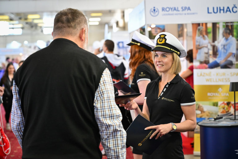 Hosteska počas medzinárodného veľtrhu gastronómie Danubius Gastro a medzinárodného veľtrhu cestovného ruchu ITF Slovakiatour v Inchebe. Bratislava, 12. apríl 2024. Foto: SITA.