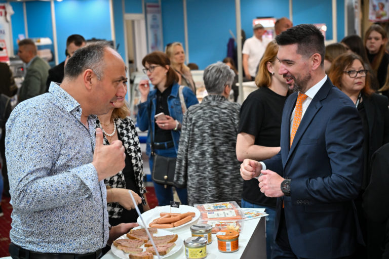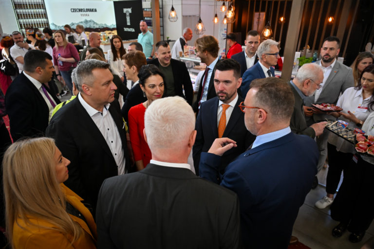 Minister pôdohospodárstva a rozvoja vidieka SR Richard Takáč (vpravo) počas medzinárodného veľtrhu gastronómie Danubius Gastro a medzinárodného veľtrhu cestovného ruchu ITF Slovakiatour v Inchebe. Bratislava, 12. apríl 2024. Foto: SITA.