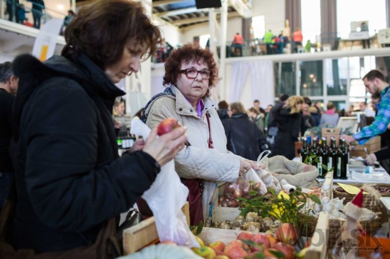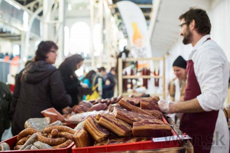 Predaj slaniny počas podujatia s názvom Vianočný Dobrý trh. Bratislava, 20. december 2014. Foto: SITA/Jozef Jakubčo