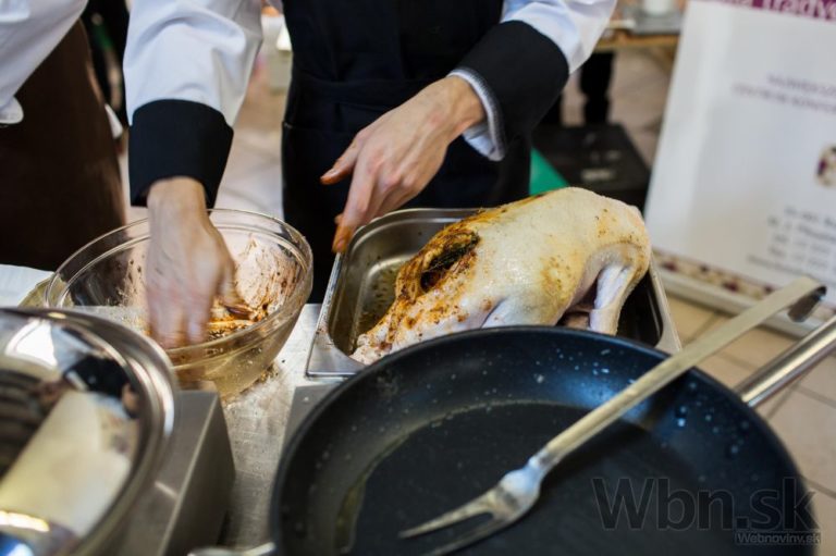 Kuchár pripravuje kačiču počas podujatia s názvom Vianočný Dobrý trh. Bratislava, 20. december 2014. Foto: SITA/Jozef Jakubčo
