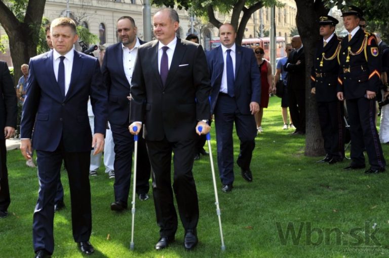 Zľava: Premiér Robert Fico a prezident Andrej Kiska pred spomienkovým a pietnym aktom kladenia vencov pri príležitosti 71. výročia Slovenského národného povstania. Bratislava, 27. august 2015. Foto: SITA/Ján Slovák