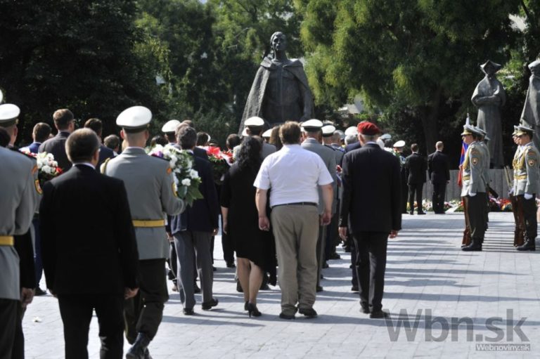Prezident Andrej Kiska (v strede vzadu) počas spomienkového a pietneho aktu kladenia vencov pri príležitosti 71. výročia Slovenského národného povstania. Bratislava, 27. august 2015. Foto: SITA/Ján Slovák