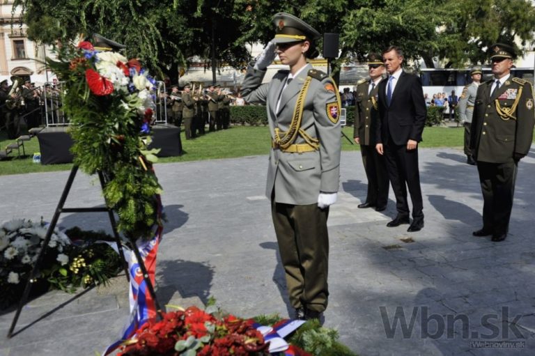 Štátny tajomník ministerstva obrany Miloš Koterec (druhý sprava) počas spomienkového a pietneho aktu kladenia vencov pri príležitosti 71. výročia Slovenského národného povstania. Bratislava, 27. august 2015. Foto: SITA/Ján Slovák